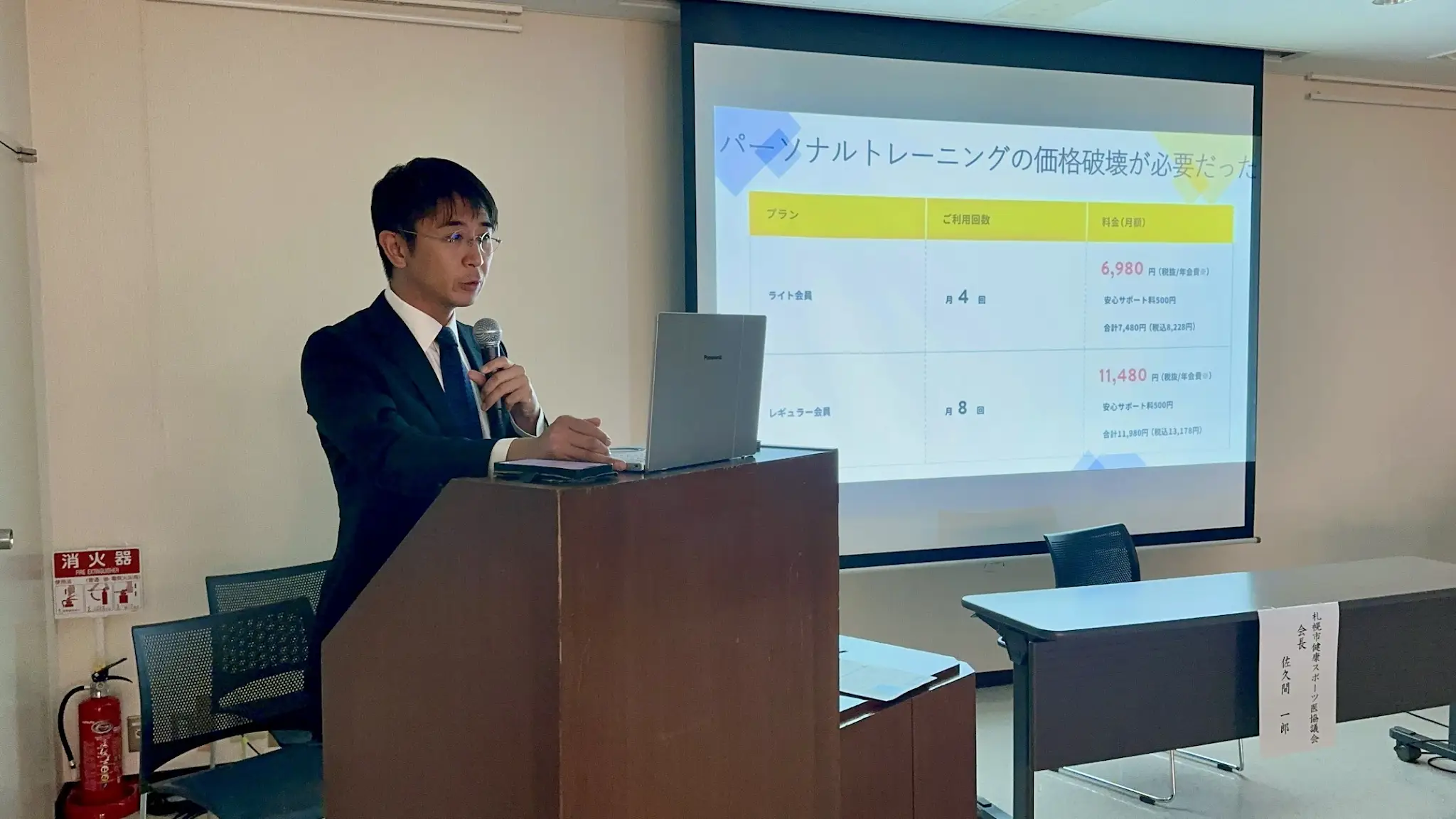長年、北海道のスポーツ医の活動に尽力されてきた佐久間会長からご指名を頂き「フィットネス側の人間から、医師に向けて、忌憚なく要望を伝えてほしい」との心強い後押しも頂き、登壇させて頂きました。