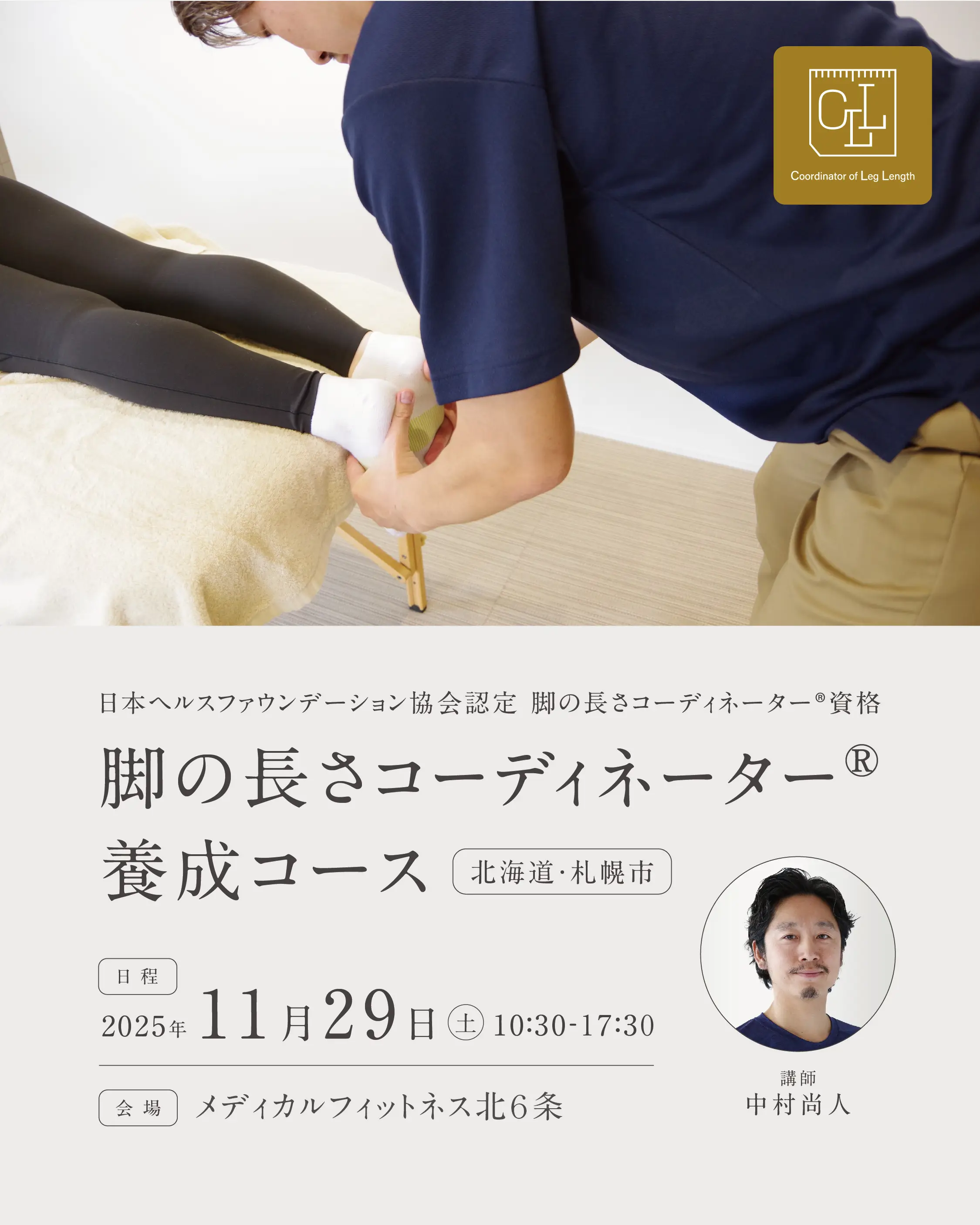 「脚の長さコーディネーター養成コース」開催のお知らせ