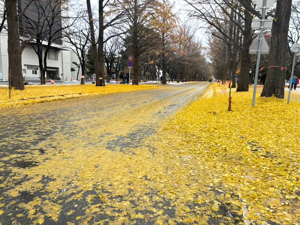 少し残念でしたが、黄金色の絨毯のように地面を覆う落ち葉もとてもきれいで、これはこれで季節を感じられる景色でした。