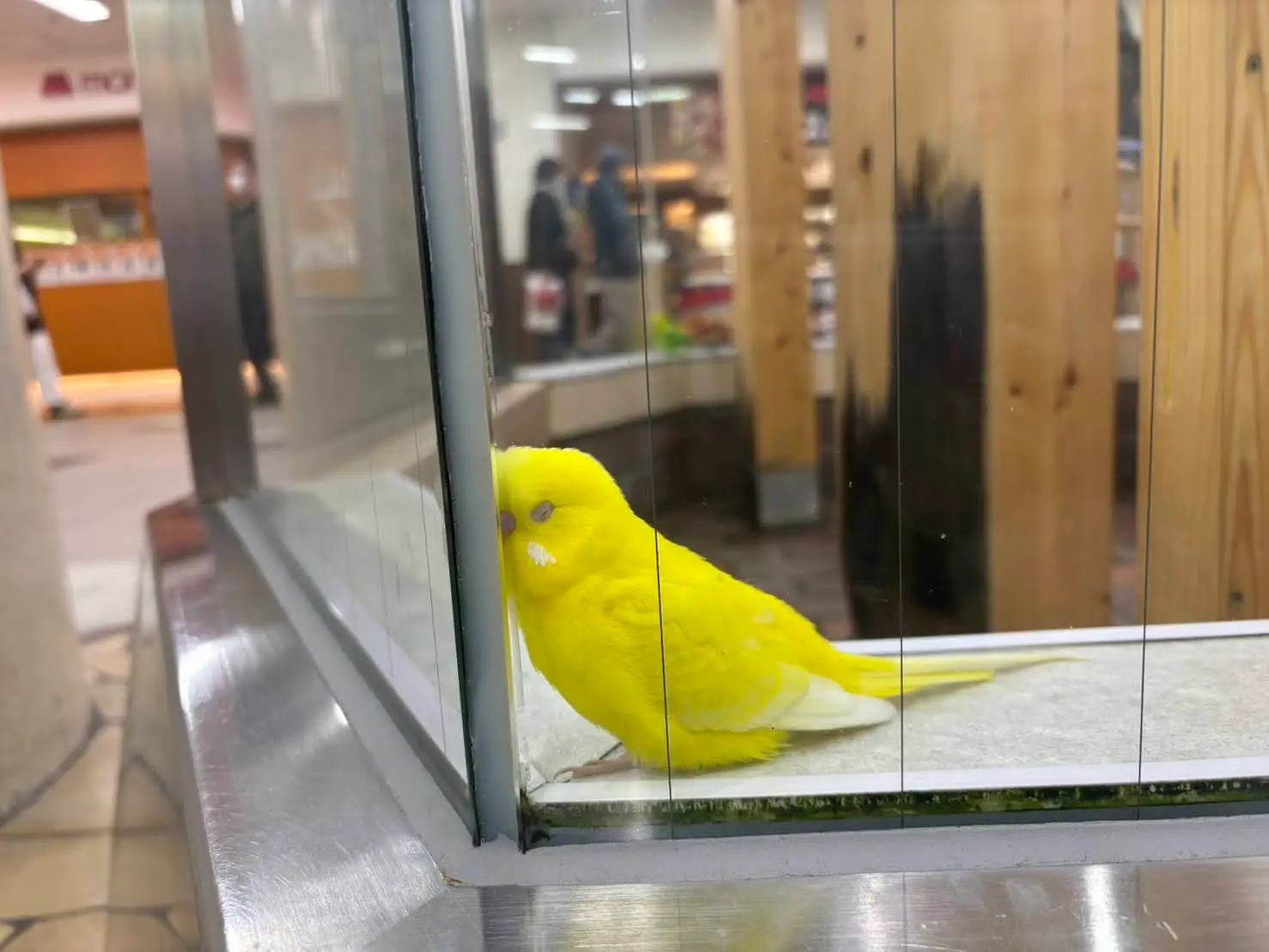 地下街にある「小鳥の広場」。窓に向かってお話ししていました。かわいい。
