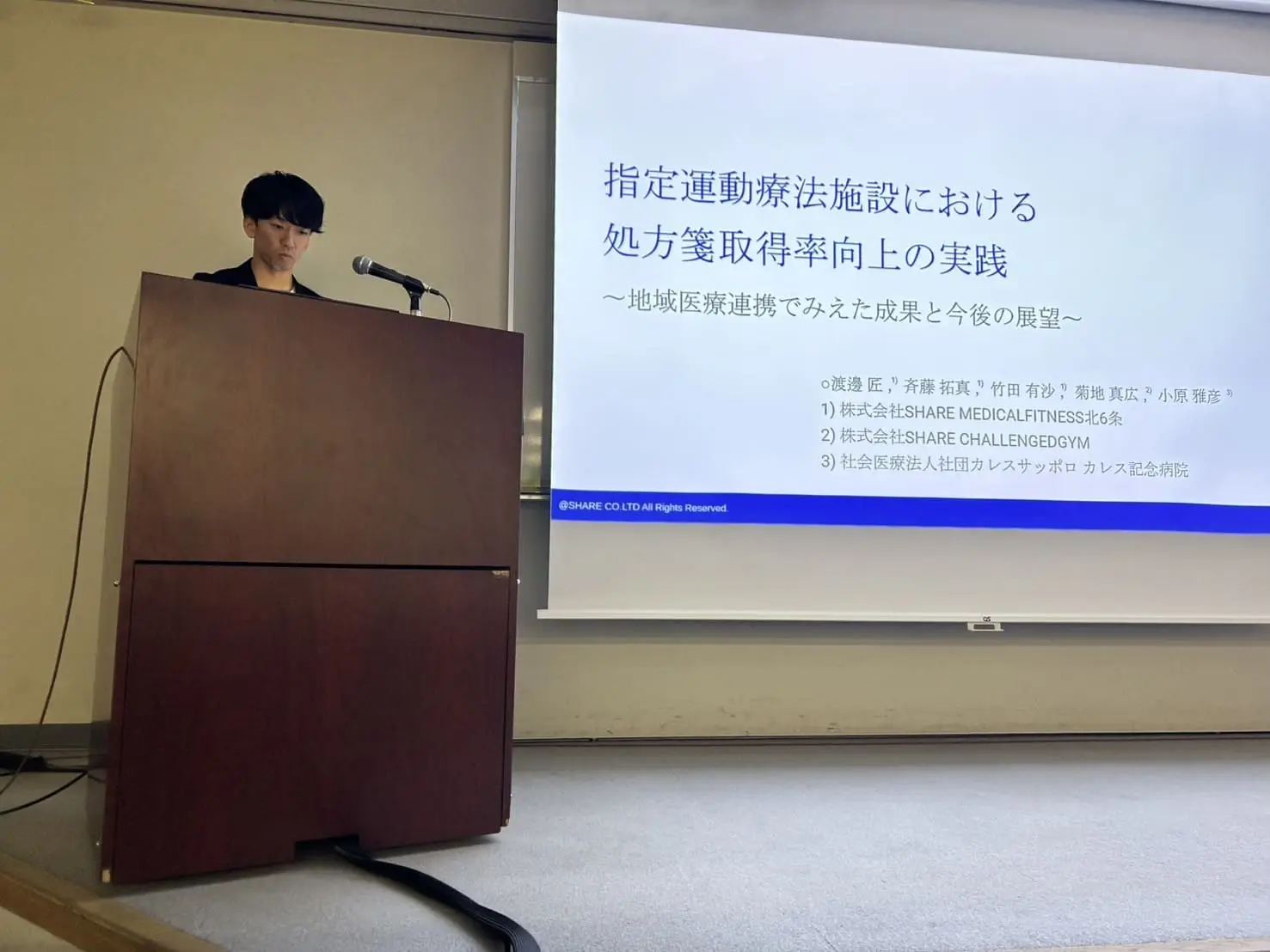 本学会では、株式会社SHAREから3名が口述発表を行い、指定運動療法施設(メディカルフィットネス北6条)における実践の成果と、地域連携の課題・今後の展望を報告しました。