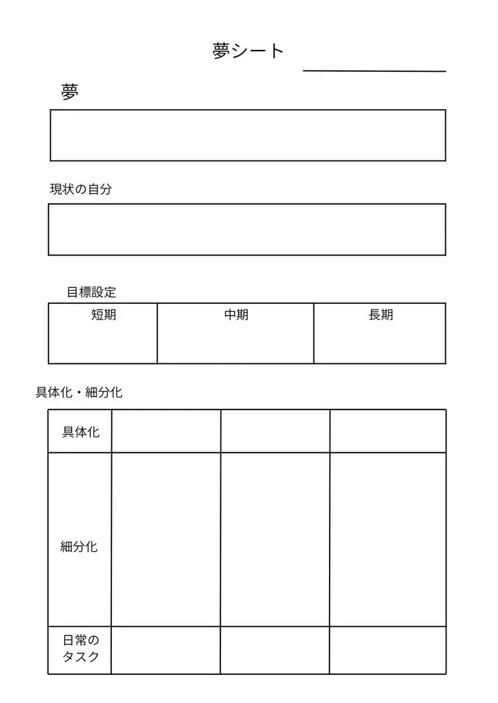 書くことで、自分と向き合い、「夢を叶える為に今最大限できること」が可視化されます。