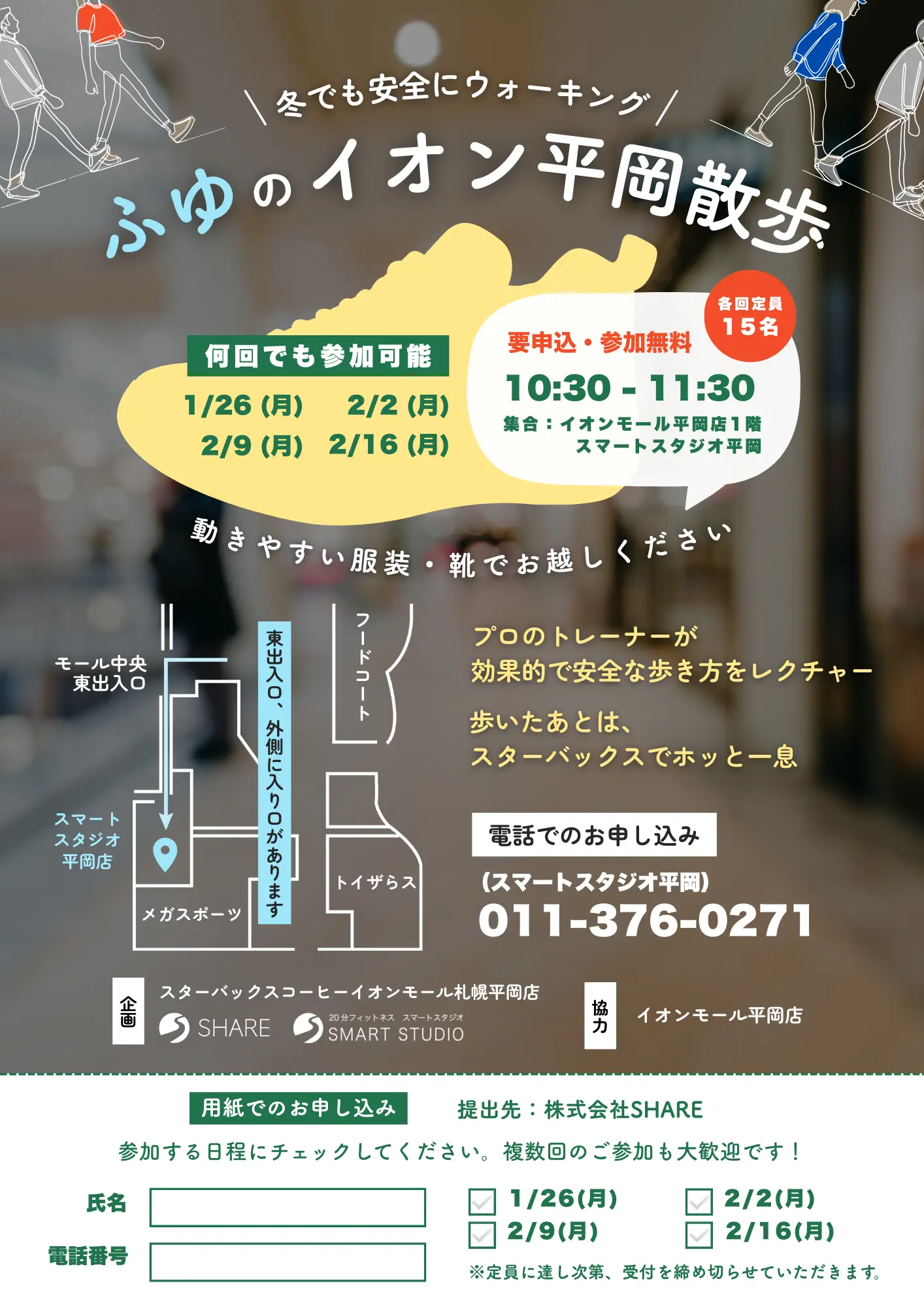 雪道での転倒リスクや寒さから、どうしても家に閉じこもりがちになる北海道の冬。そんな冬期間の運動不足解消と、外出機会の創出を目的としたイベント「ふゆのイオン平岡散歩」を開催いたしました。