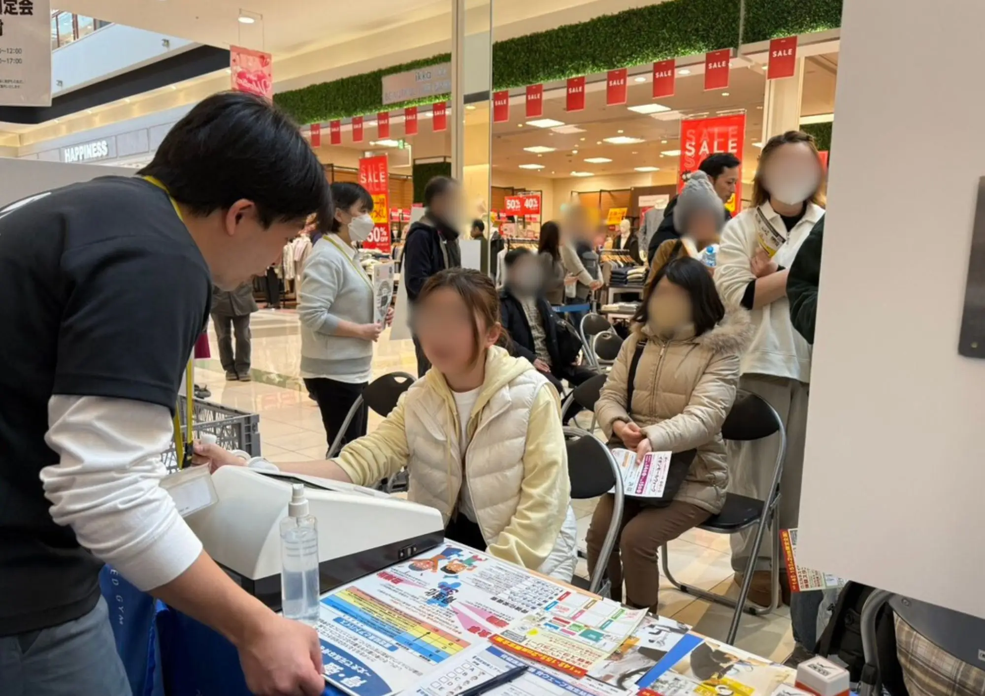イベント当日は買い物に来られた方や、健康に興味のある方など多くの方が立ち寄ってくださり、2日間で100名を超える方に測定を体験していただくことができました。