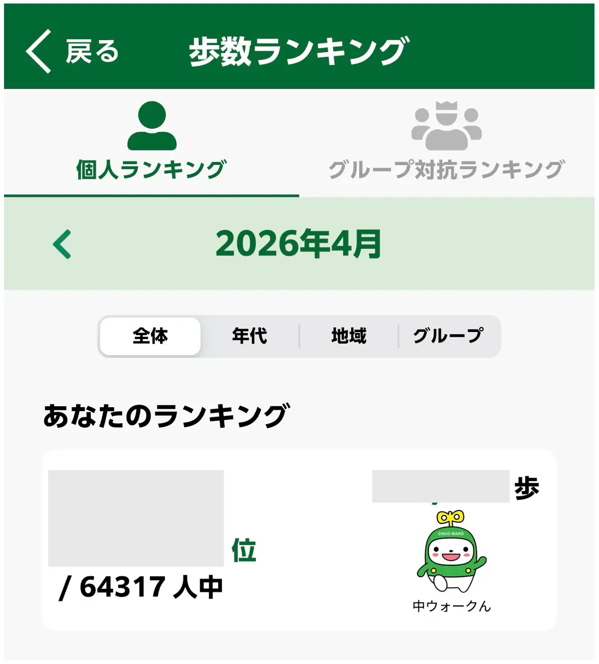 そして、3月31日時点で4万人超、さらに4月2日時点では2026年末目標だった5万人に到達しています。この記事を書いている4月11日現在、歩数ランキングを見ると64,000名以上が参加しています。