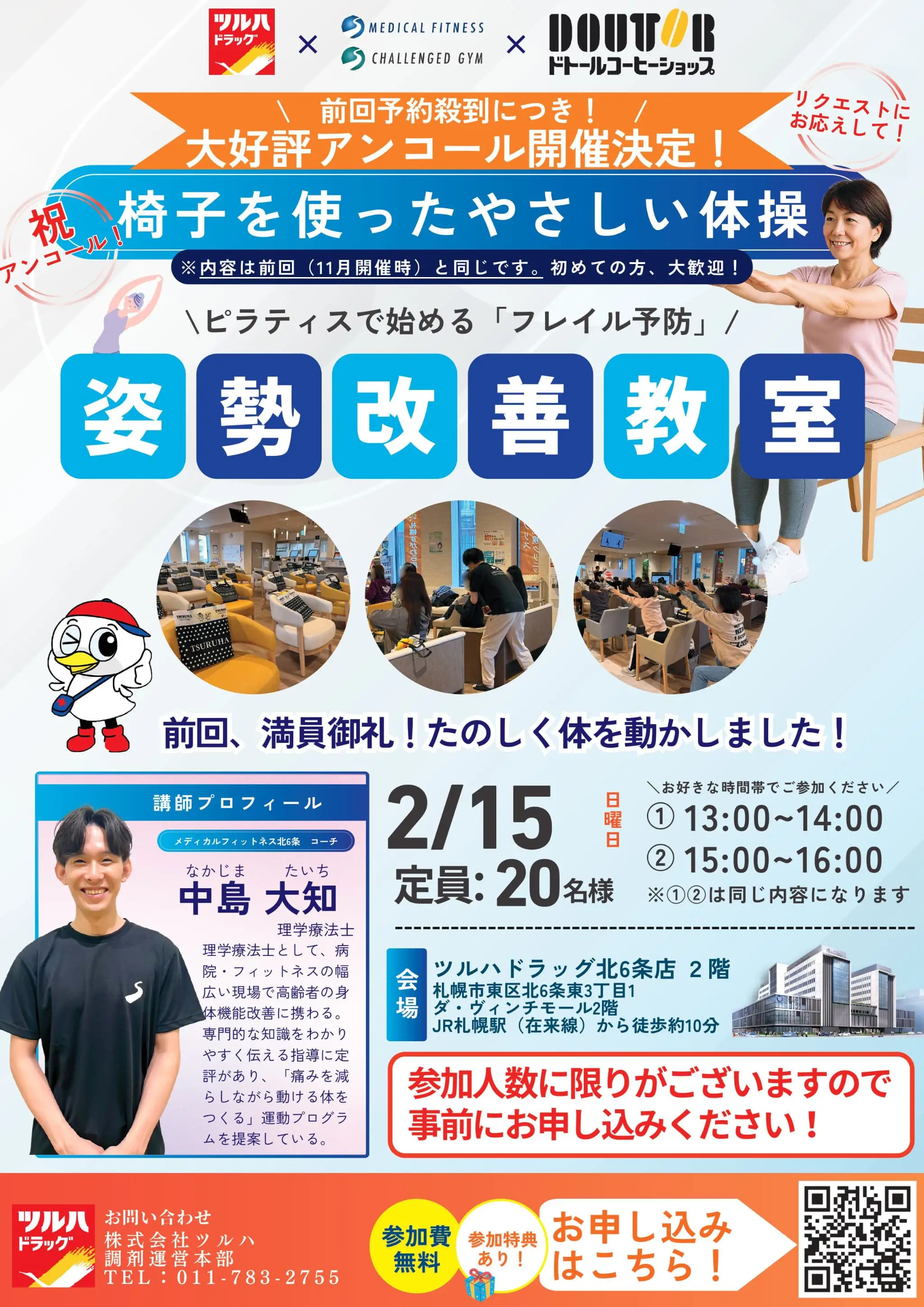 【ツルハ様主催】前回は満員御礼!「姿勢改善教室」アンコール開催が決定